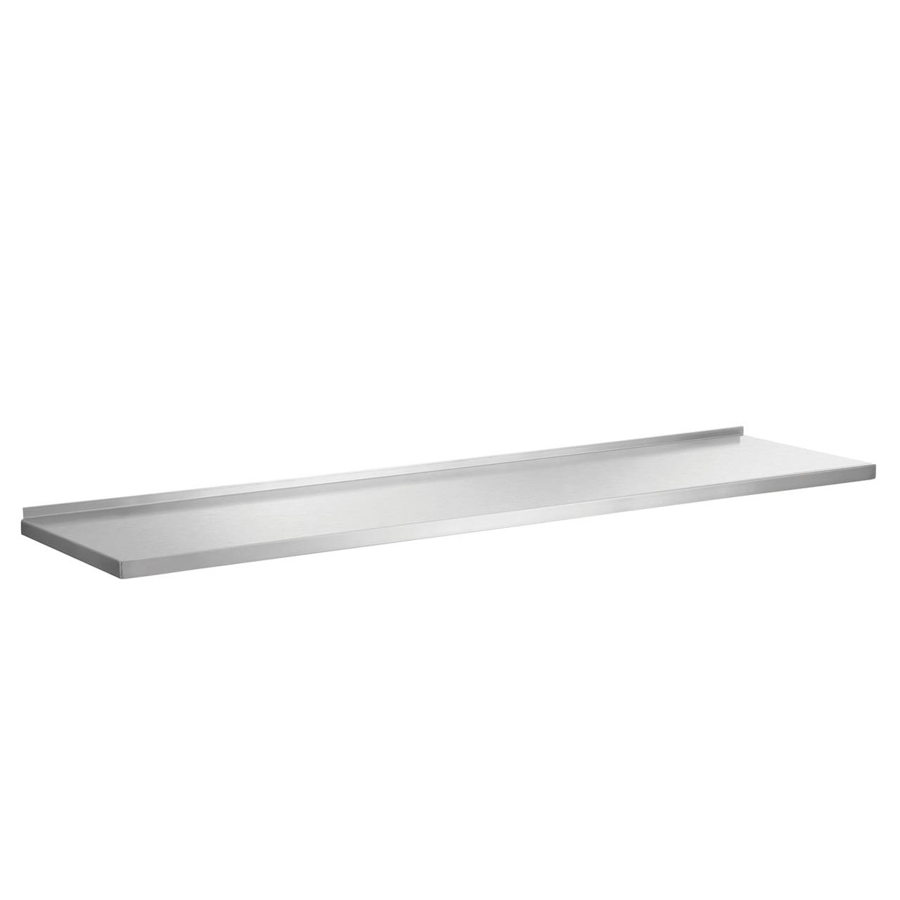 Wandregal aus Edelstahl in verschiedenen Längen. Zur Montage benötigen Sie: 1 Paar verstellbare Tragschienen (530 mm lang, 600.061), 1 Paar Halterungen (600.601) und 1 oder 2 Regalböden (je nach Bedarf). Bitte separat aus unserem Angebot bestellen.