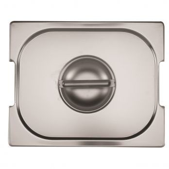 Deckel aus rostfreiem Stahl für GN 1/2 mit Aussparungen für die Griffe.
