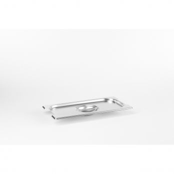 Deckel aus rostfreiem Stahl für GN 1/3 mit Aussparungen für die Griffe.