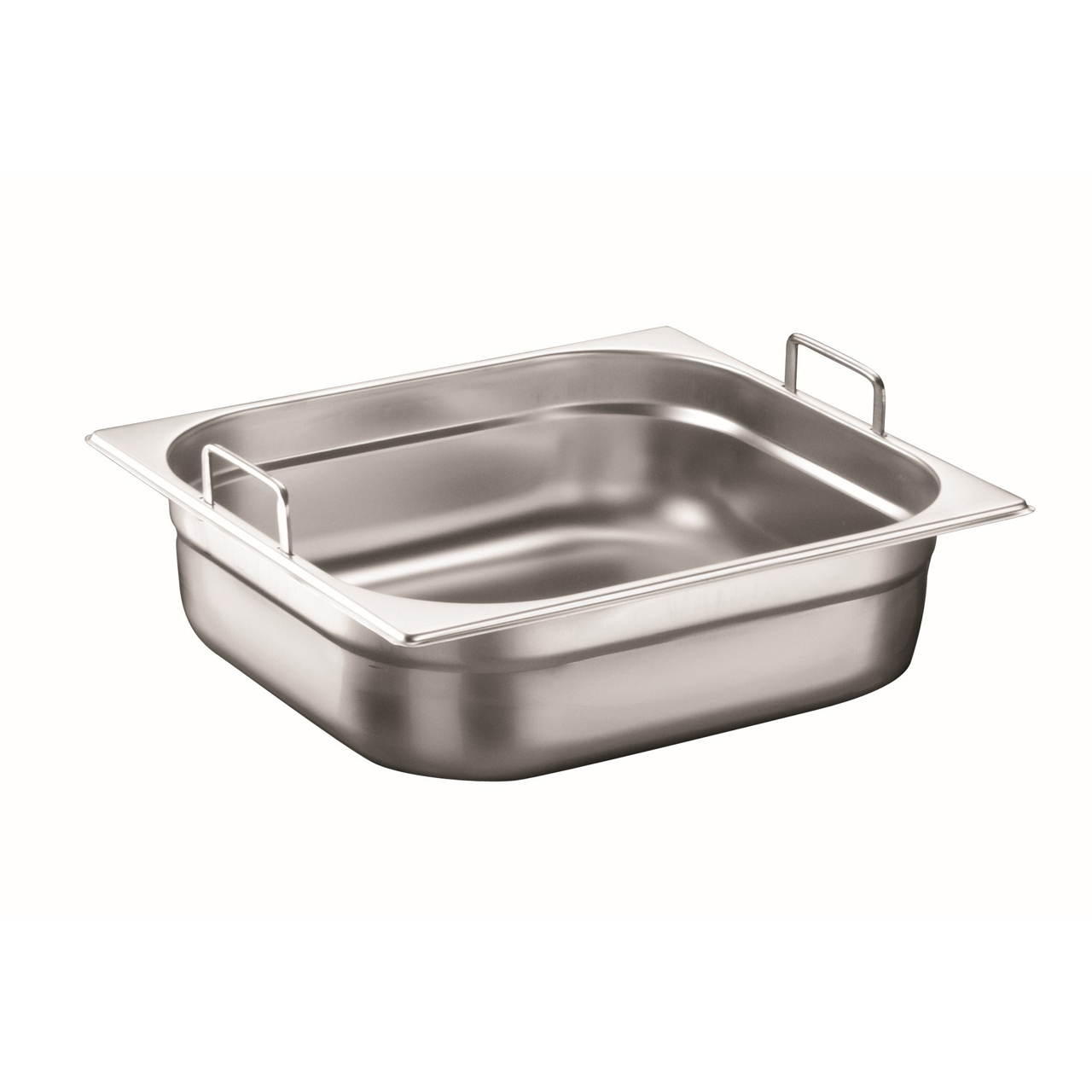 Gastroschüssel aus Edelstahl mit Griffen Tiefe 65 mm.