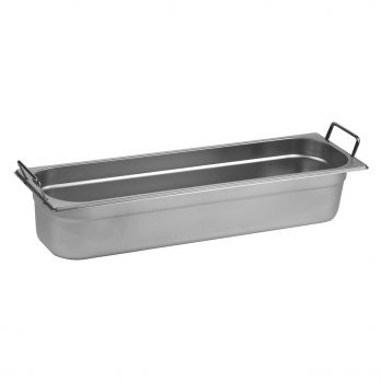 Gastroschüssel aus Edelstahl mit Griffen Tiefe 150 mm.