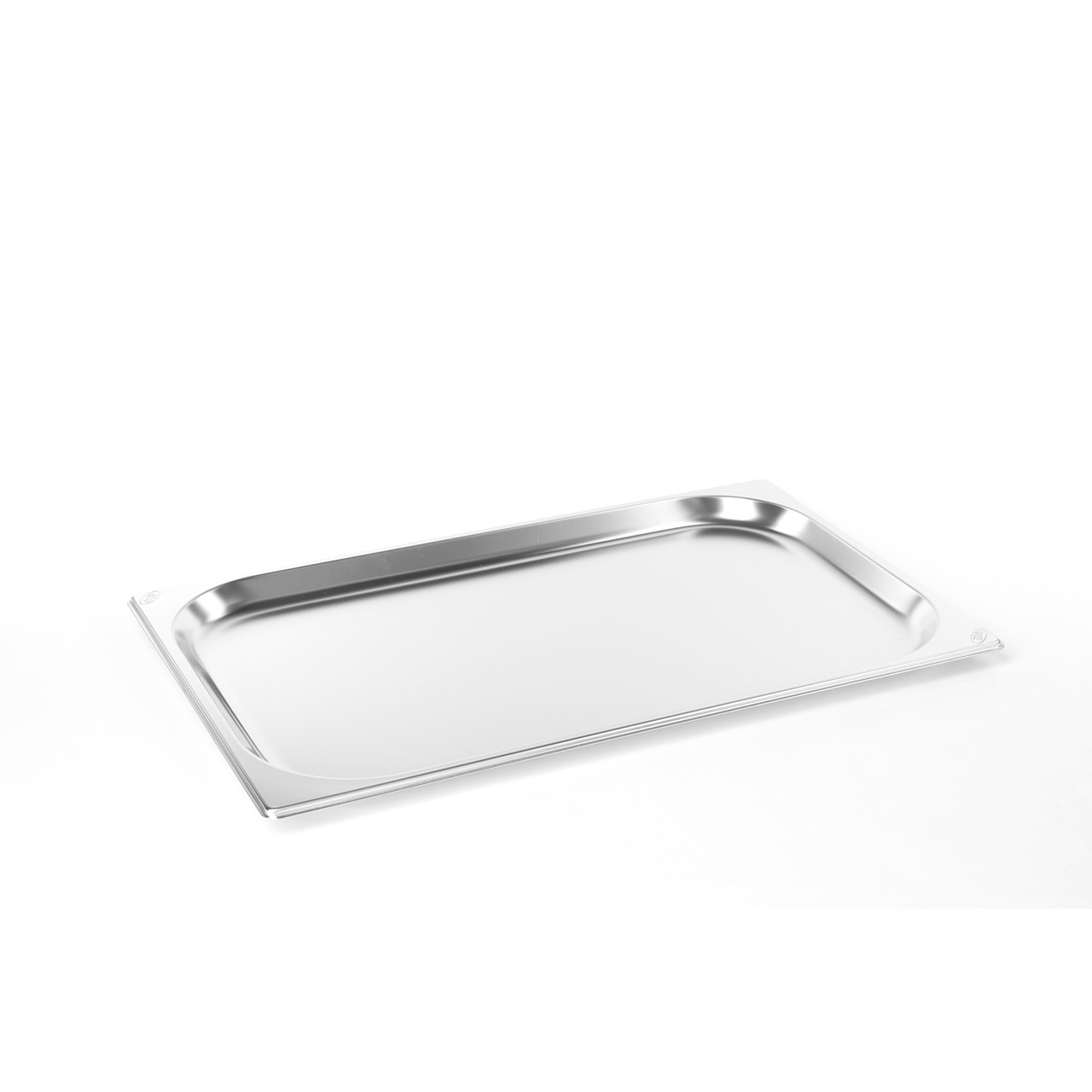 Gastrobehälter aus Edelstahl, auch als Serviertablett geeignet. Die vom Hersteller angegebene Materialstärke des Gastrobehälters beträgt 0,7 mm.