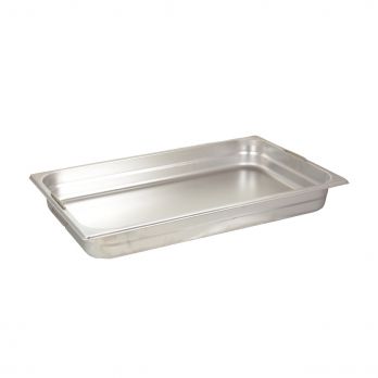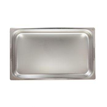 Gastroschüssel GN 1/1 aus Edelstahl, Tiefe 100 mm mit versenkbaren Griffen.