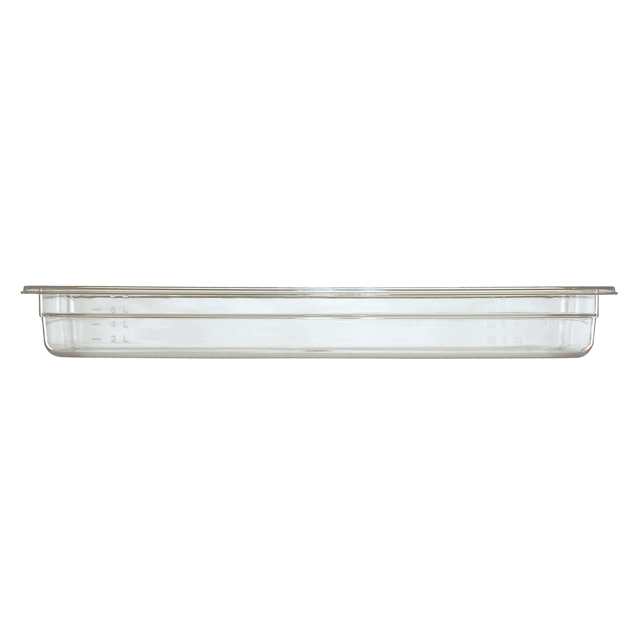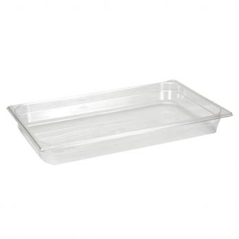 Polycarbonat Gastrobehälter GN 1/1, Tiefe 65 mm. GN sind mit einer Volumenmarkierung (l) ausgestattet. Temperaturbegrenzung von - 30 °C- + 100 °C.