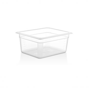 Gastrobehälter GN 1/2 - 150 aus Polypropylen, temperaturbeständig von 0°C bis 70°C, geeignet für die Spülmaschine, Mikrowelle bis 70°C, nicht für den Gefrierschrank bei Temperaturen unter 0°C empfohlen