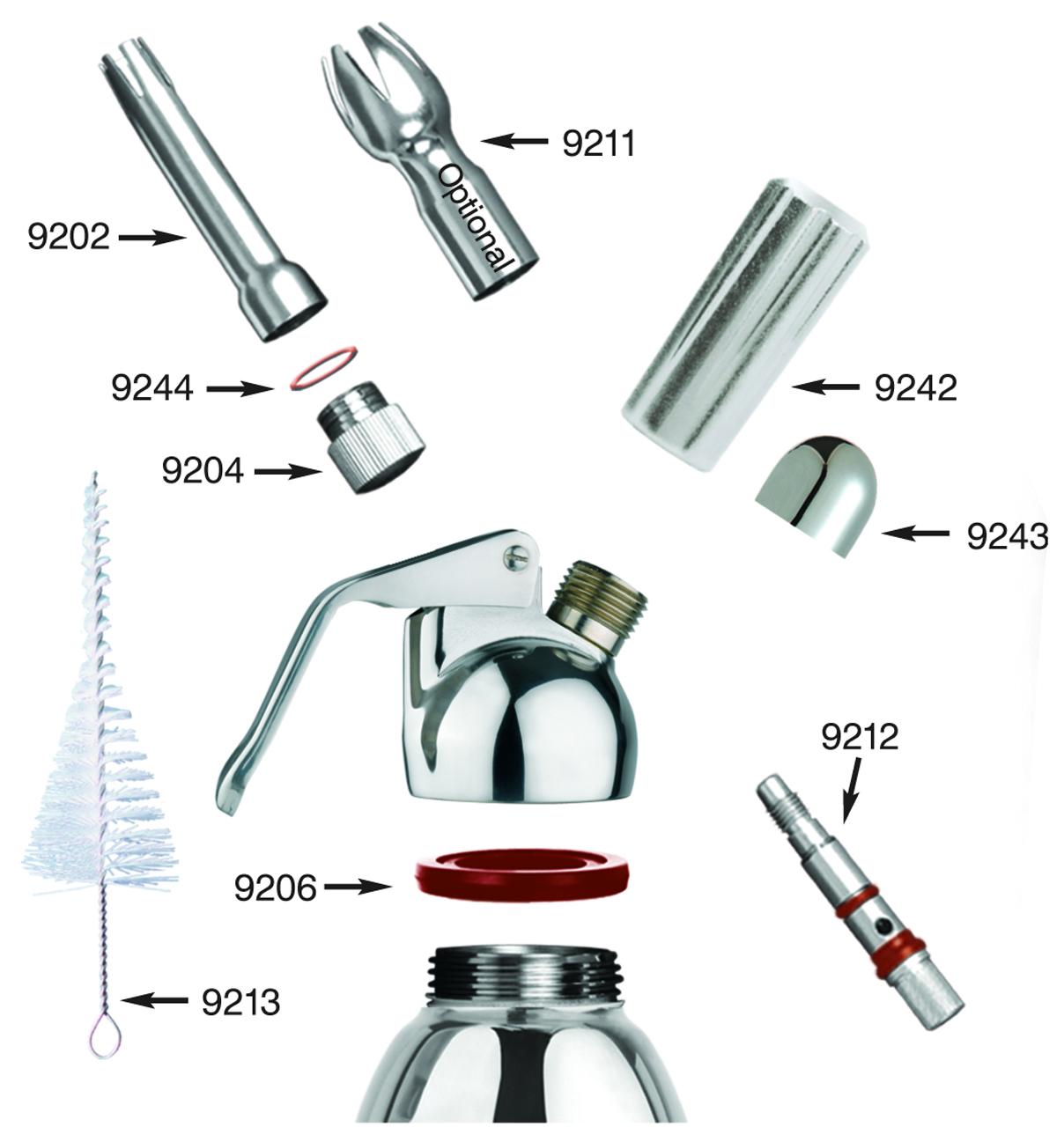 Schlagsahneflasche aus Edelstahl für die Herstellung von bis zu 400 ml Schlagsahne. Die Schlagsahneflasche benötigt 1 Einwegkartusche e. Kopf und Körper sind spülmaschinenfest.