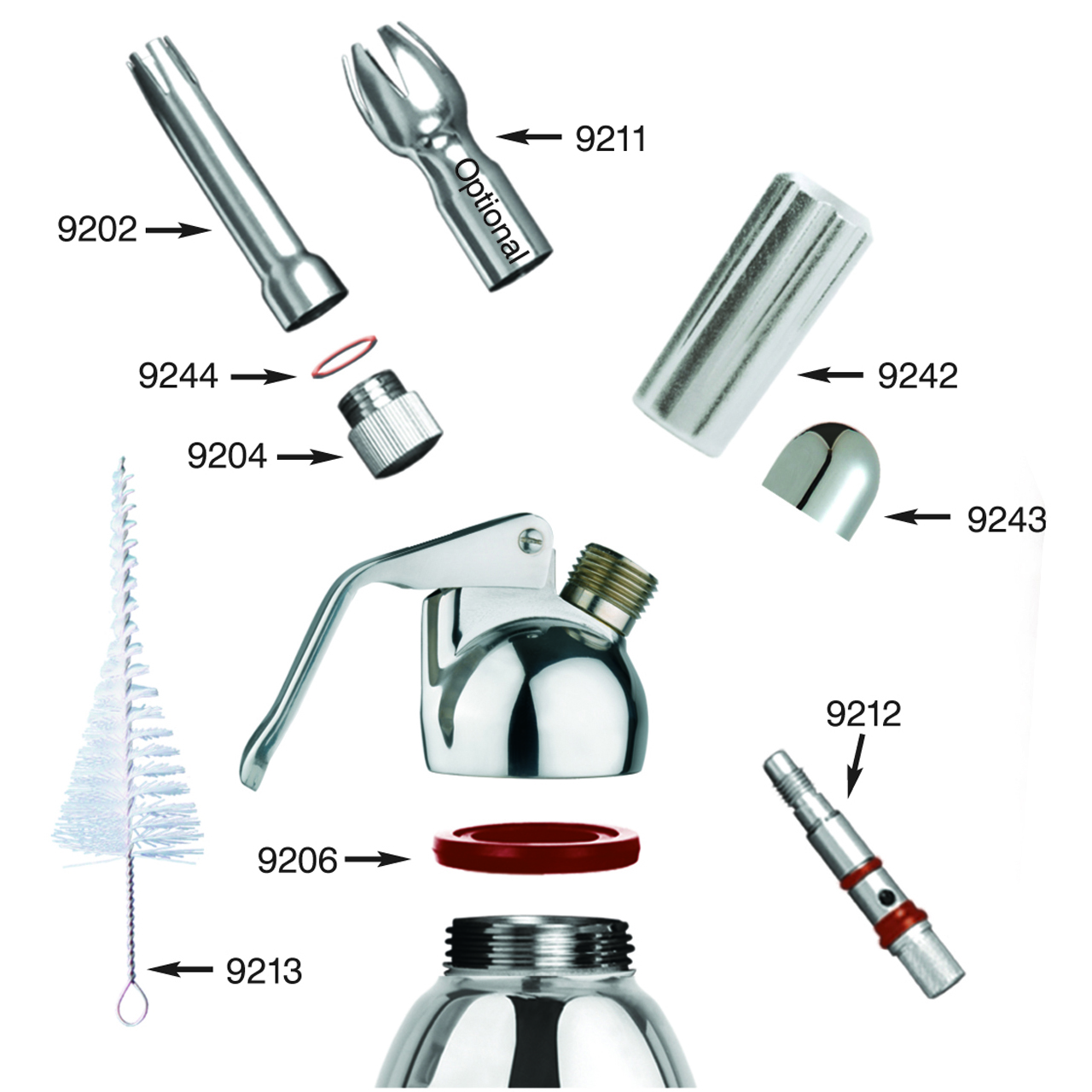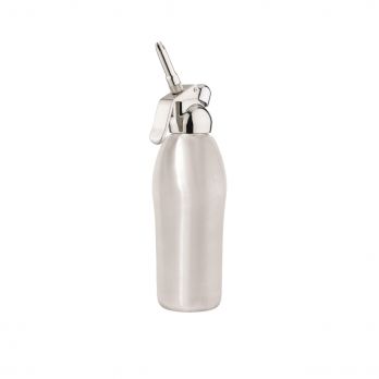 Schlagsahneflasche aus Edelstahl für die Herstellung von bis zu 700 ml Schlagsahne. Für die Schlagsahneflasche werden 2 Stück Einweg-N2O-Gasflaschen benötigt. Kopf und Körper sind spülmaschinenfest