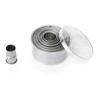 Ausstecher in verschiedenen Durchmessern von 2,7 cm bis 10,4 cm, aus Chrom-Nickel-Edelstahl. 12 Stück. Ideal für den professionellen Einsatz in der Gastronomie. Hochwertiges Material garantiert lange Lebensdauer und Zuverlässigkeit.