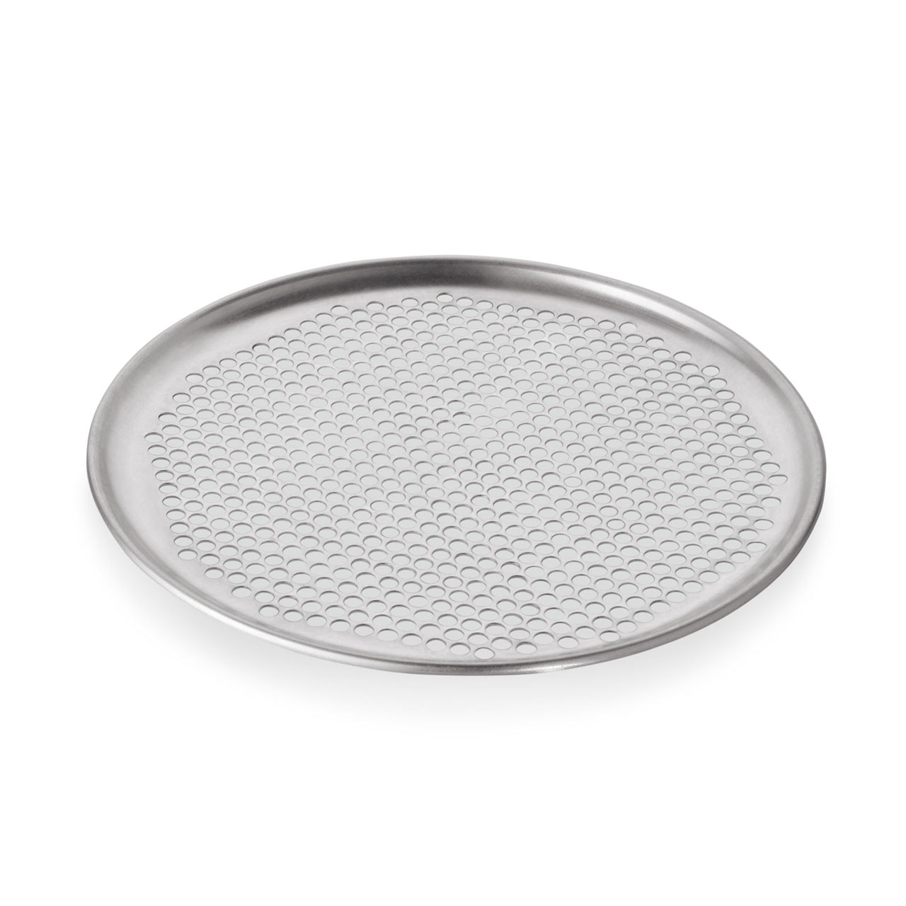 Pizzablech, Durchmesser 30 cm, Lochdurchmesser 6,5 mm, Aluminium. Eine ausgezeichnete Wahl für die moderne Gastronomie und den anspruchsvollen Hausgebrauch.