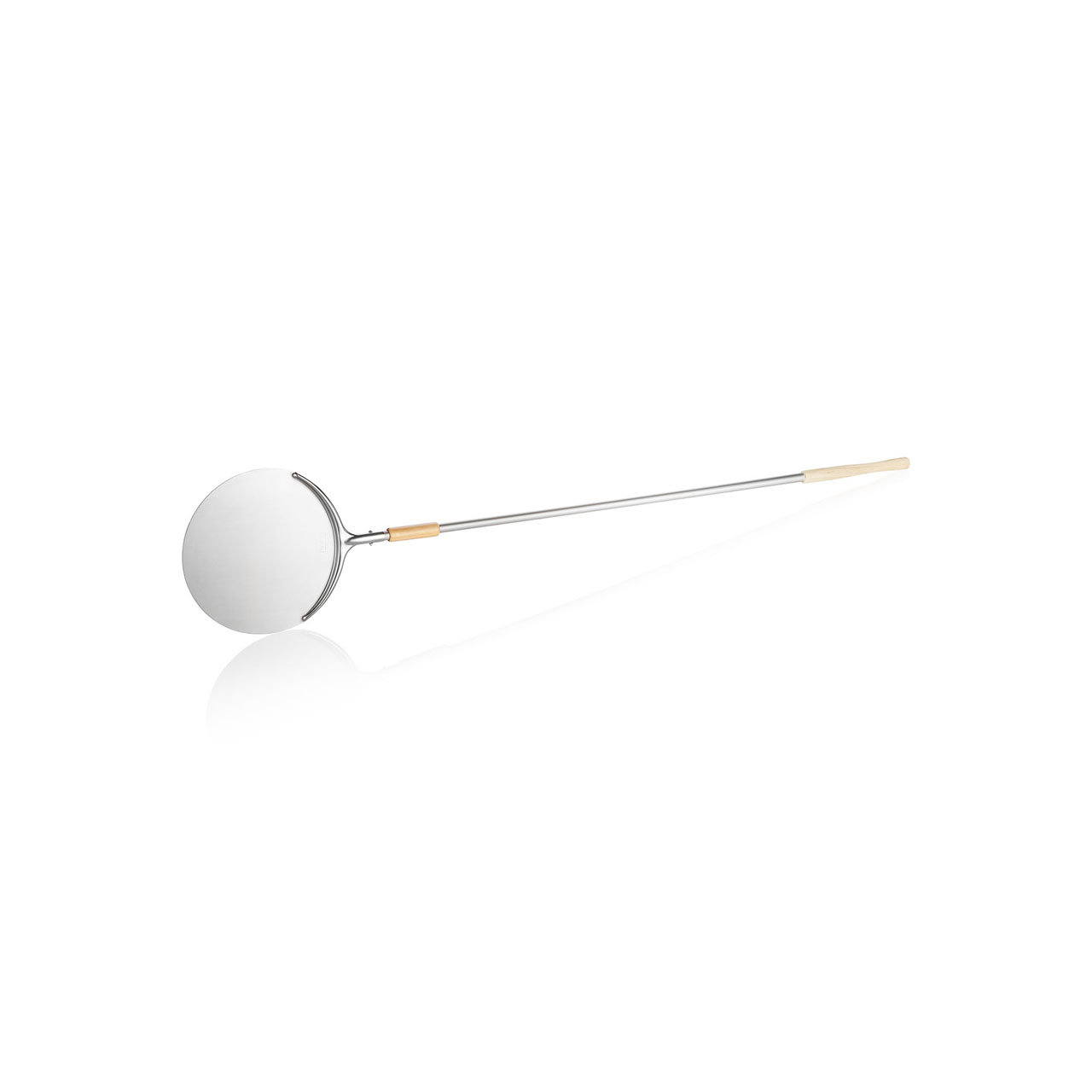 Pizzaschaufel, 200 cm lang, Durchmesser 40 cm, beweglicher Holzgriff, Aluminium, Holz. Eine ausgezeichnete Wahl für die moderne Gastronomie und den anspruchsvollen Hausgebrauch.