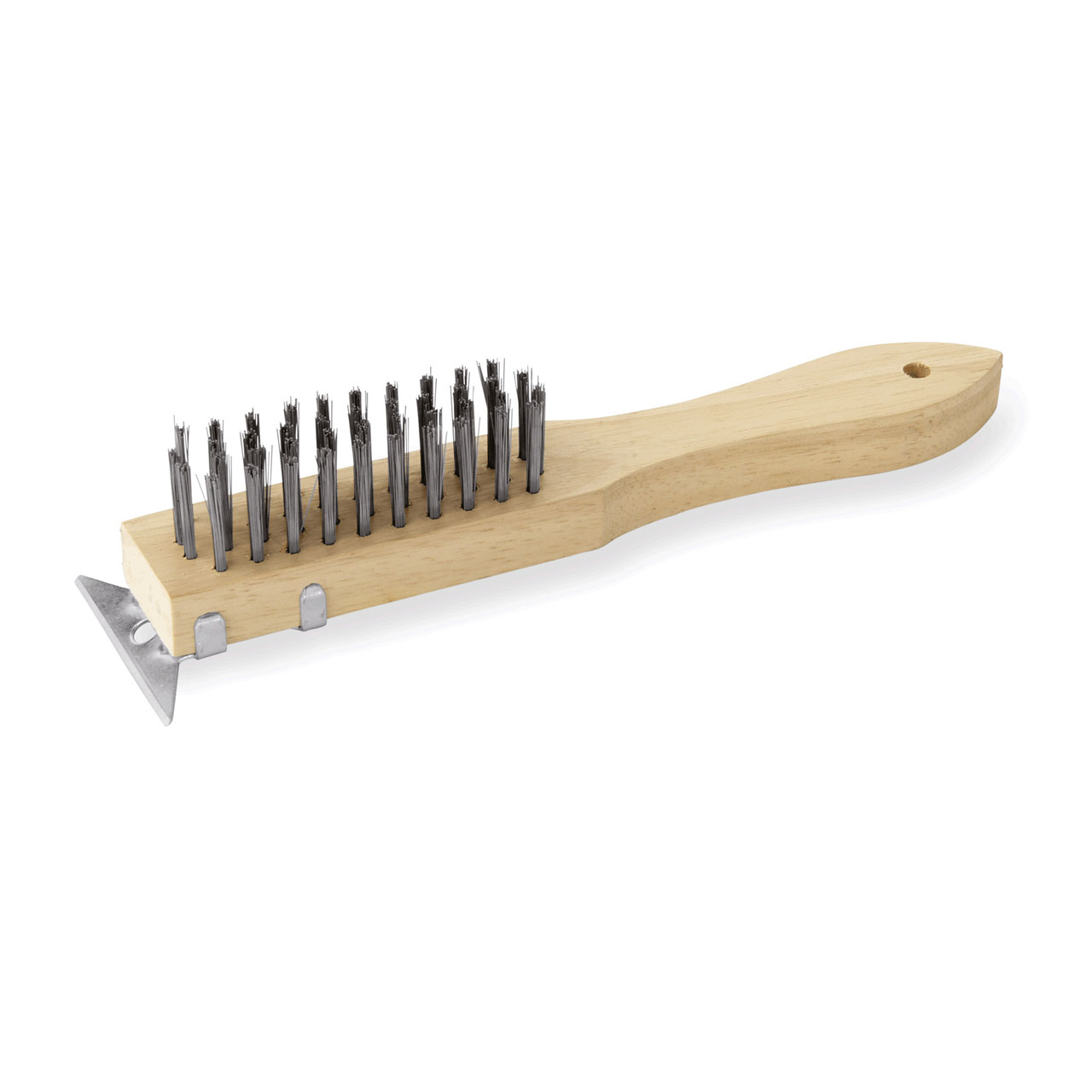 Reinigungsbürste und Schaber, 28 cm lang mit 3 cm langen Stahlborsten, aus Holz und Stahl. Ideal für den professionellen Einsatz in der Gastronomie. Hochwertige Materialien garantieren Langlebigkeit und Zuverlässigkeit.