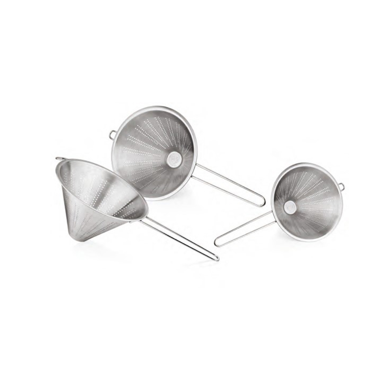 Konisches Sieb aus Edelstahl – Durchmesser oben 20 cm.