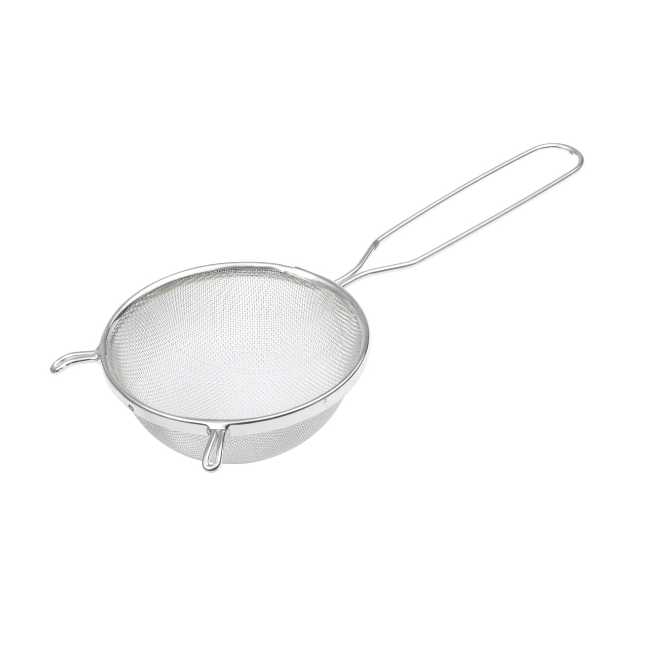 Das Metallgewebe ist fest mit dem Stahlblechrand und dem Griff mit Stahldrahthaken verbunden. Galvanisch beschichtet. Feines, dichtes Gewebe mit Maschenweite 0,7x 0,7.