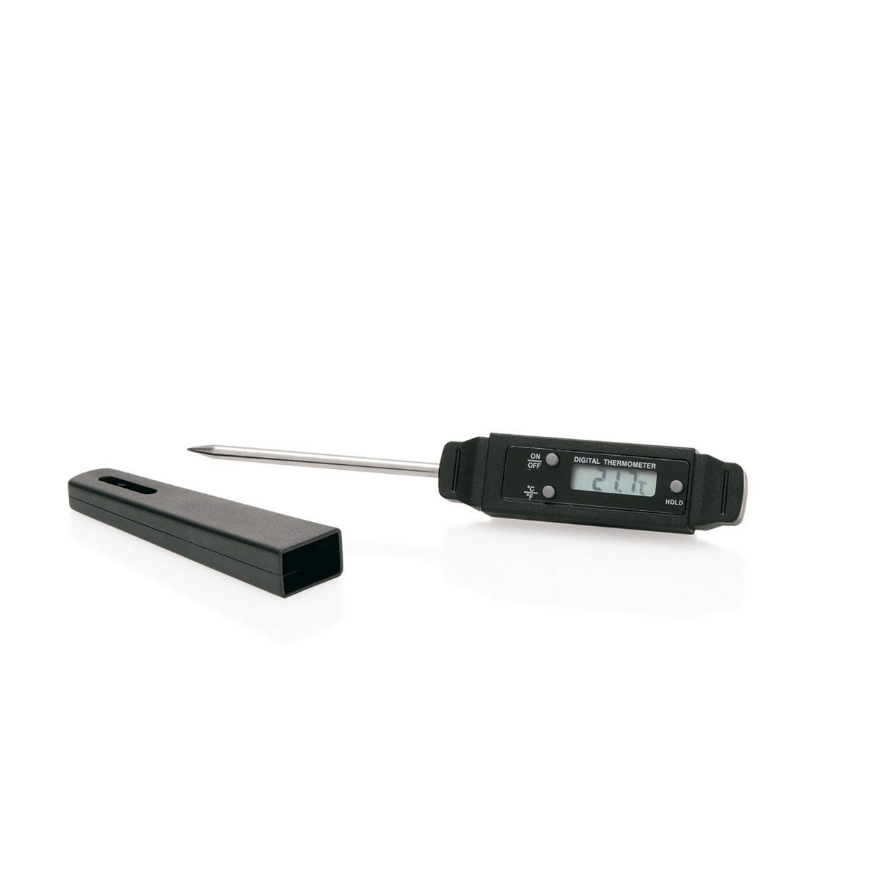 Digitales Thermometer zur Kontrolle der Temperatur von Lebensmitteln. Misst von 0 bis 120 °C.