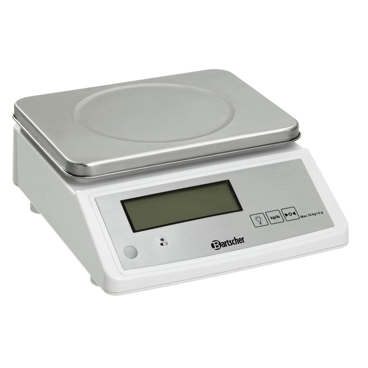 Digitale Hilfswaage – ohne Markenzeichen. Gewicht: 15 kg. Skalenteilung: 5 g.