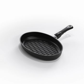 Pfannengröße 35 x 24 cm, auch für Induktion geeignet. Der speziell geformte Boden erzeugt einen Grilleffekt. Der massive Boden ermöglicht eine schnelle und gleichmäßige Wärmeverteilung und verkürzt so die Kochzeit. Ausgestattet mit einer speziellen LOTAN -Antihaft-Oberfläche. Wird mit Edelstahlgriff geliefert.