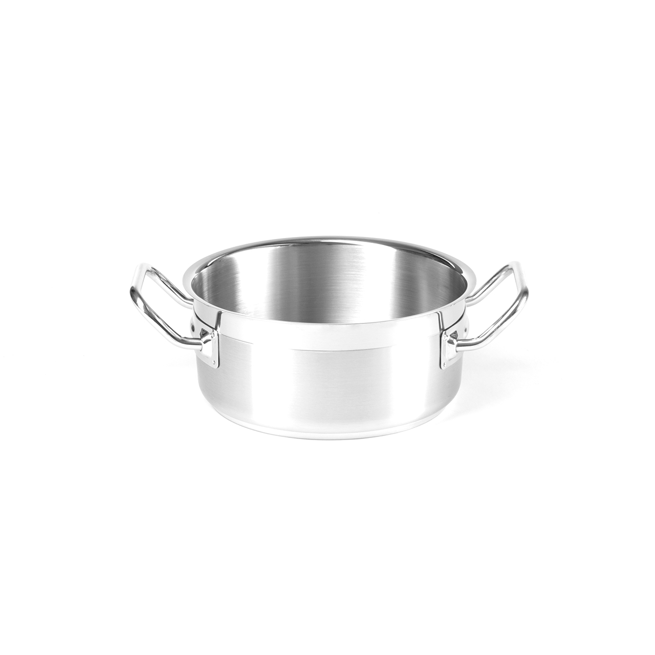 Das Produkt ist aus hochwertigem Edelstahl 18/10 gefertigt, der eine lange Lebensdauer, hohe Widerstandsfähigkeit und Zuverlässigkeit garantiert. Es ist einlagig (6-8 mm dick) und hat einen dreilagigen Sandwichboden, der eine hervorragende Wärmeleitung garantiert und die Verwendung auf allen Herdarten ermöglicht. Inhalt: 1,75 l.