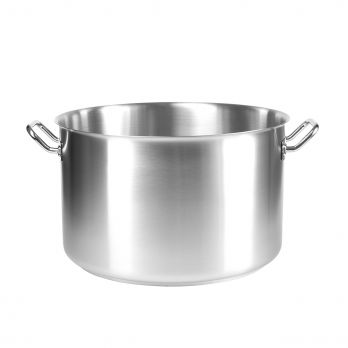 Das Produkt ist aus hochwertigem Edelstahl 18/10 gefertigt, der eine lange Lebensdauer, hohe Widerstandsfähigkeit und Zuverlässigkeit garantiert. Es ist einlagig (6-8 mm dick) und hat einen dreilagigen Sandwichboden, der eine hervorragende Wärmeleitung garantiert und die Verwendung auf allen Herdarten ermöglicht. Fassungsvermögen: 42 l.
