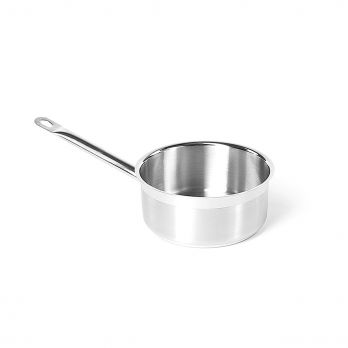 Der Topf ist aus hochwertigem 18/10-Edelstahl gefertigt, der eine lange Lebensdauer und Zuverlässigkeit garantiert. Er ist einlagig (6-8 mm dick) und hat einen dreilagigen Sandwichboden, der eine hervorragende Wärmeleitung gewährleistet. Der lange Griff liegt gut in der Hand und gewährleistet eine gute Handhabung. Fassungsvermögen: 1,75 l.