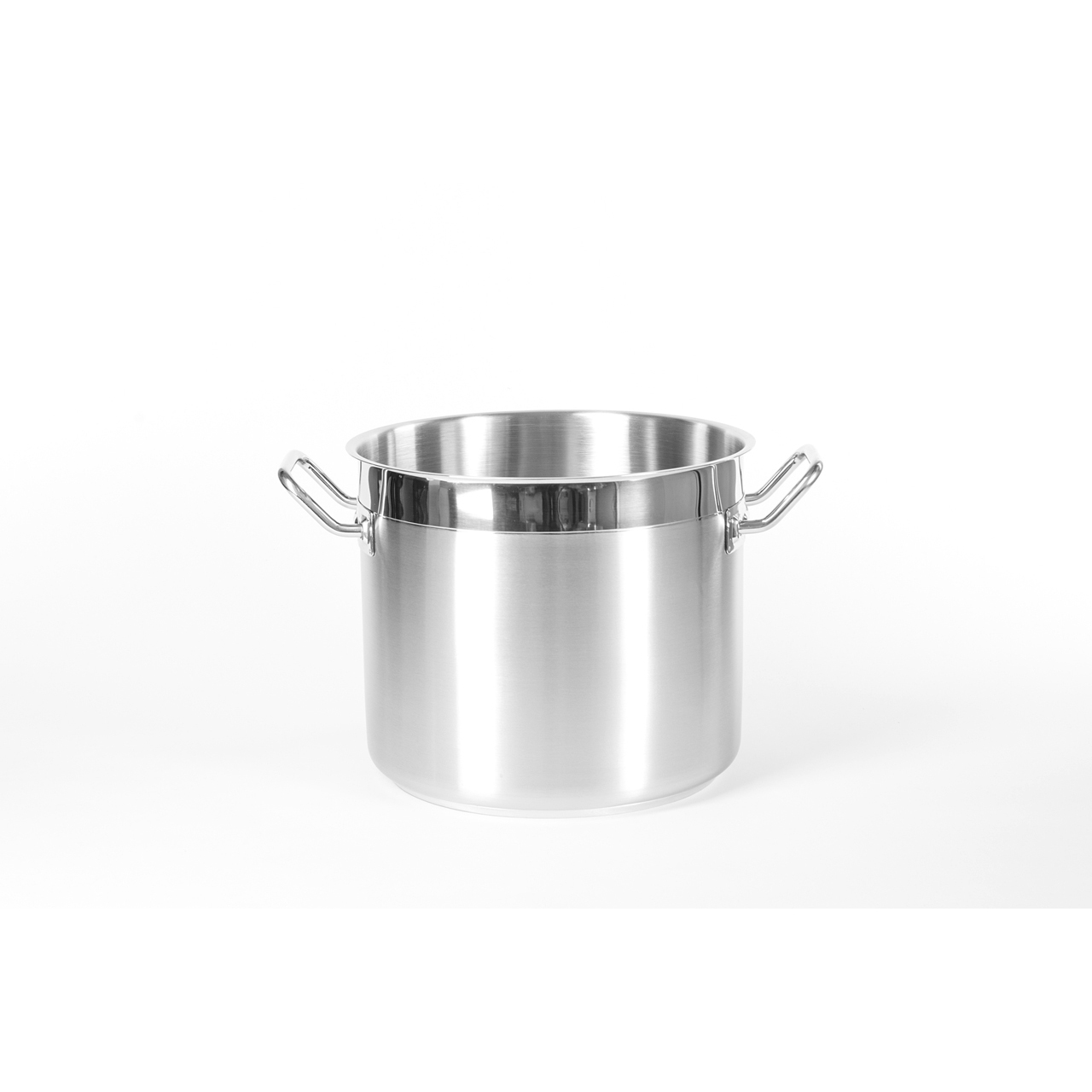 Das Produkt ist aus hochwertigem Edelstahl 18/10 gefertigt, der eine lange Lebensdauer, hohe Widerstandsfähigkeit und Zuverlässigkeit garantiert. Es ist einlagig (6-8 mm dick) und hat einen dreilagigen Sandwichboden, der eine hervorragende Wärmeleitung garantiert und die Verwendung auf allen Herdarten ermöglicht. Fassungsvermögen: 14,5 l.