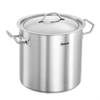 Topf mit Deckel in verschiedenen Größen. Hitzeisolierte Griffe, geeignet für alle Herdarten und Induktion. Material inklusive Griffe: Edelstahl. Mit Ausgießrand.