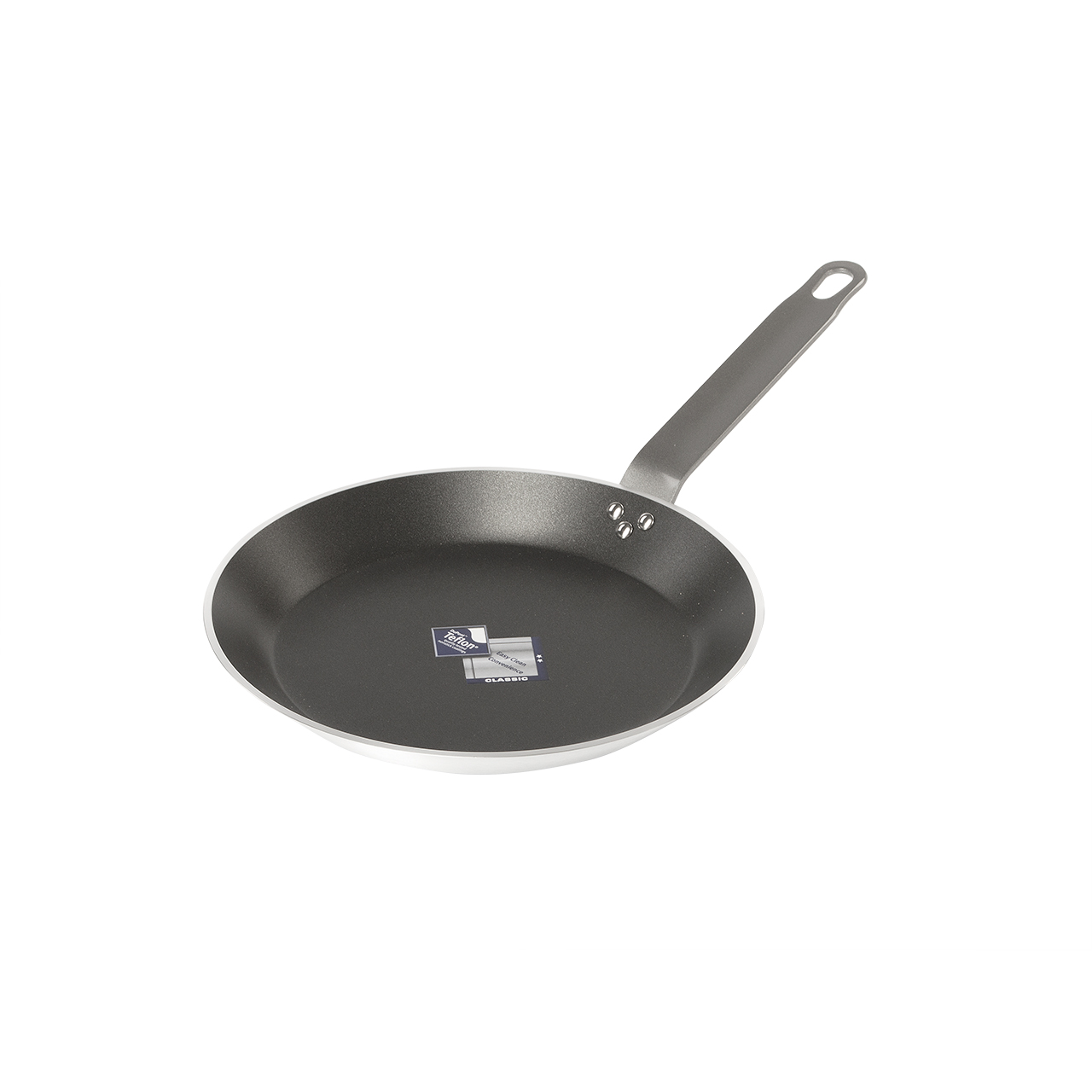 Aluminiumpfanne mit langlebiger Teflonbeschichtung. Geeignet für Gas- und Elektroherde.