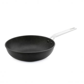 Leistungsstarke Wokpfanne durchmesser 30 cm Höhe 9 cm, inhalt 4,5 l mit doppellagiger, titanverstärkter Antihaftbeschichtung. Gefertigt aus formstabilem Aluguss für schnelle und gleichmäßige Wärmeverteilung. Der elegante Griff bleibt kühl. Stapelbar, backofenfest bis 260 °C und geeignet für Induktion sowie Gas. Hergestellt aus zertifiziertem europäischem Aluminium, PFOA-frei und sehr leicht zu reinigen.