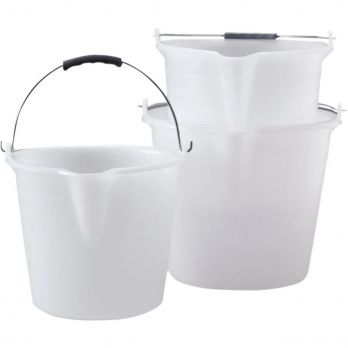 Praktischer Eimer aus Niederdruck-Polyethylen (NPE) mit Ausguss, Metallbügel und Literskala innen. Geeignet zur Handhabung und Lagerung von normalen Flüssigkeiten im Temperaturbereich von -40°C bis +80°C. Hinweis: Nicht geeignet für stark säure- oder laugenhaltige Produkte. Nicht spülmaschinengeeignet.