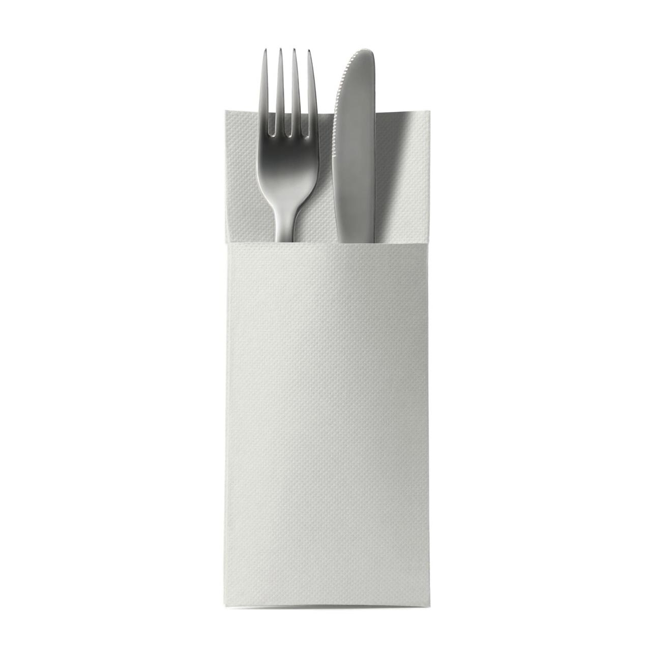Sofpoint-Bestecktaschen – für regelmäßige Mittagessen, Abendessen und Buffets, bei denen Erschwinglichkeit, Hygiene und effizientes Tischdecken im Vordergrund stehen. Es handelt sich um ein 2-lagiges Papier, das mit der Point2Point-Technik stark geprägt ist. Diese einzigartige Prägung erhöht die Haltbarkeit der Serviette und sorgt für eine textilähnliche Haptik, wodurch sie herkömmlichen Servietten überlegen ist.