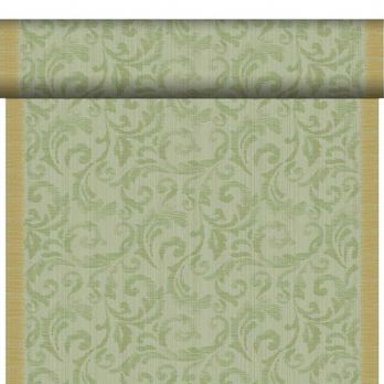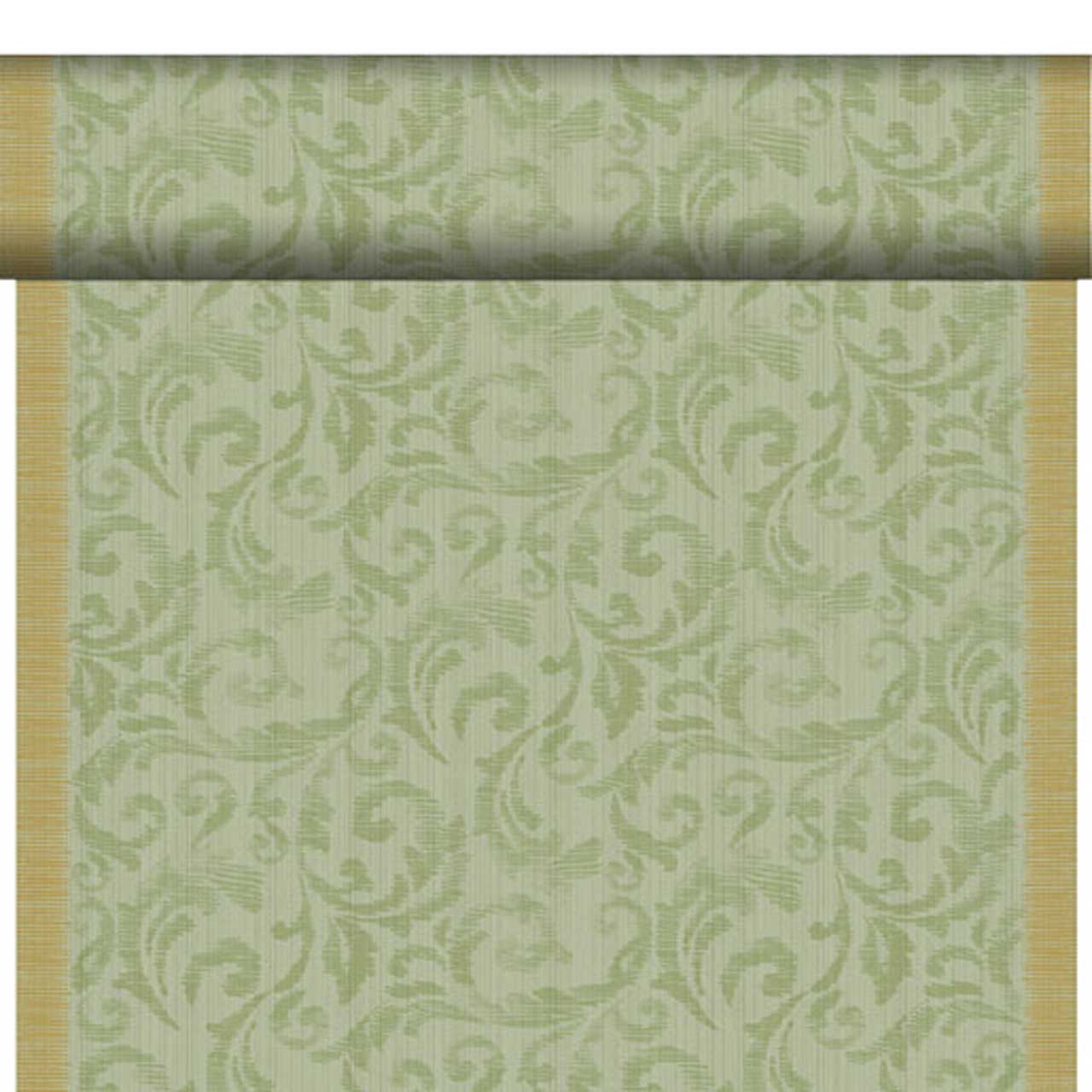 Ökologischer Tischläufer 0,4 x 24 m, Farbe: Rich Damast Pistachio. Geeignet für eine stilvolle und hygienische Tischdekoration.