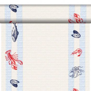 Tischläufer Sea Delights, 0,4 x 24 m. Stilvolles maritimes Motiv, ideal für Restaurants, Hotels und Themenveranstaltungen.