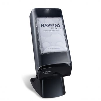 Serviettenspender aus Kunststoff in Schwarz. Ideal für Esszimmer für weniger Serviettenverbrauch. Passende Servietten finden Sie beispielsweise unter der Nummer 100026048 und 100030932.