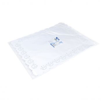 Quadratische Spitze mit einem Durchmesser von 36 x 46 cm.