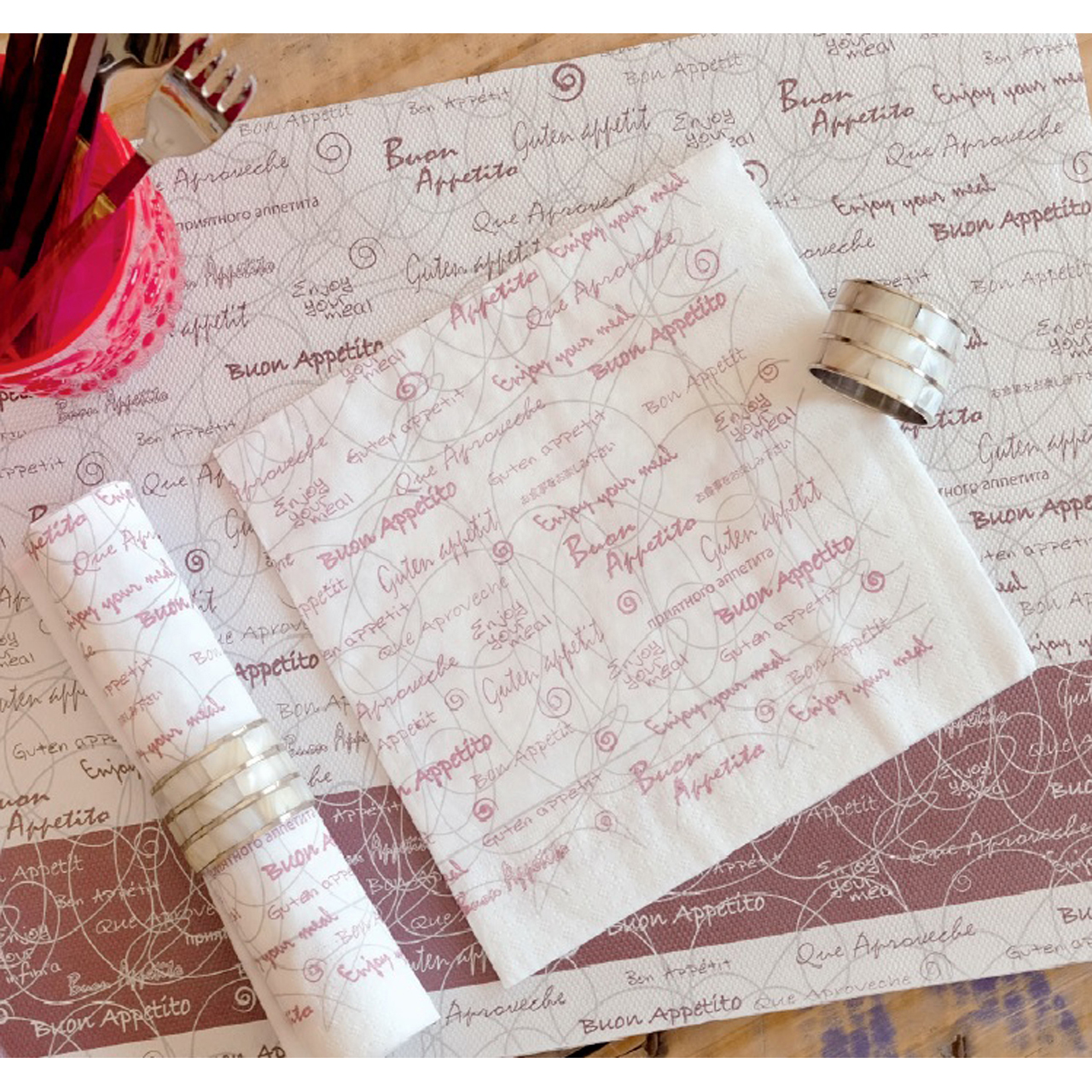 Papier-Tischsets – eine einfache und praktische Lösung, um Ihre gedeckte Tafel optisch aufzuwerten. Die Tischsets haben die Maße 30 x 45 cm und sind in einer Packung mit 250 Stück erhältlich. Bestecktaschen können separat bestellt werden.