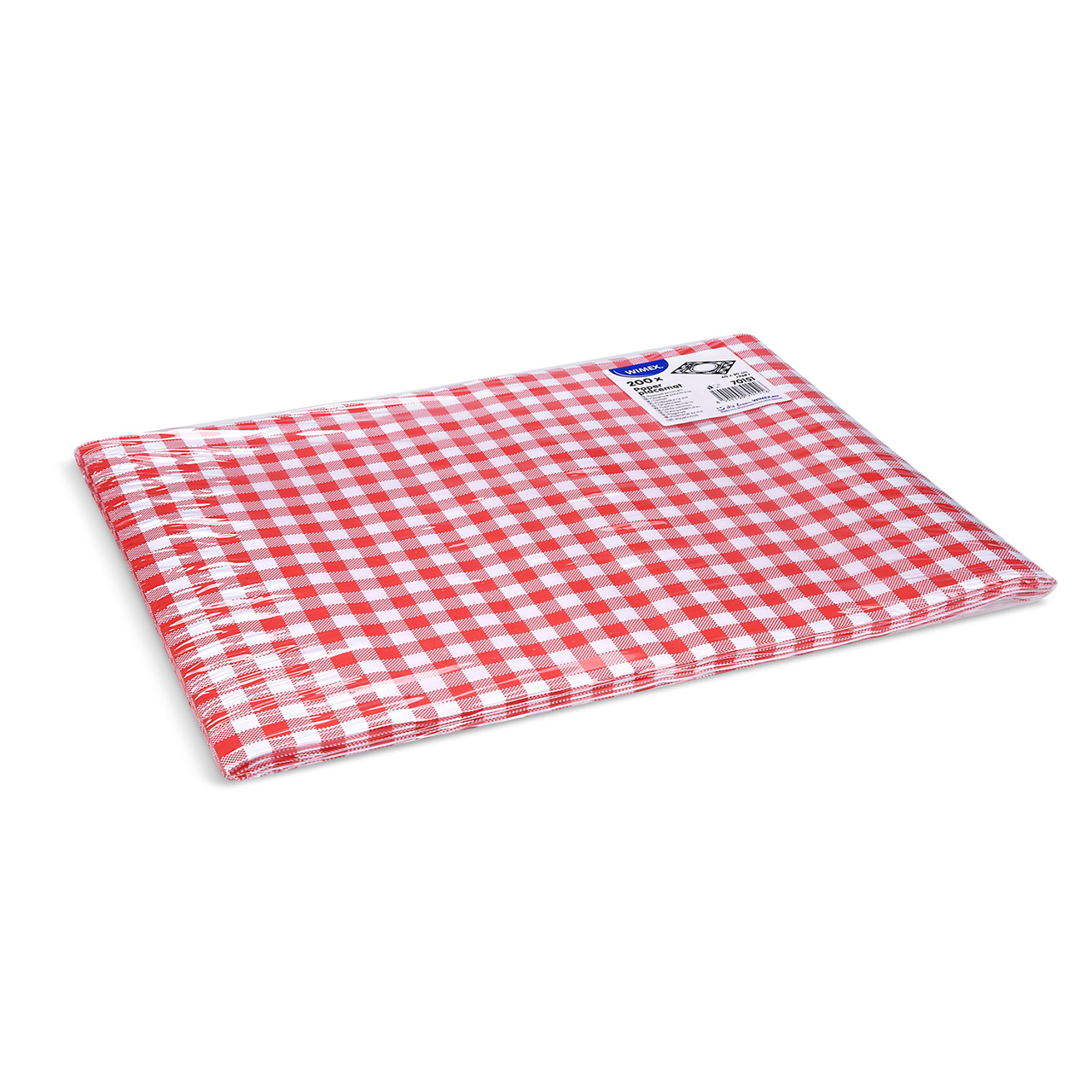 Rot karierte Tischsets aus Papier für den Tischservice. In der Packung sind 200 Stück enthalten