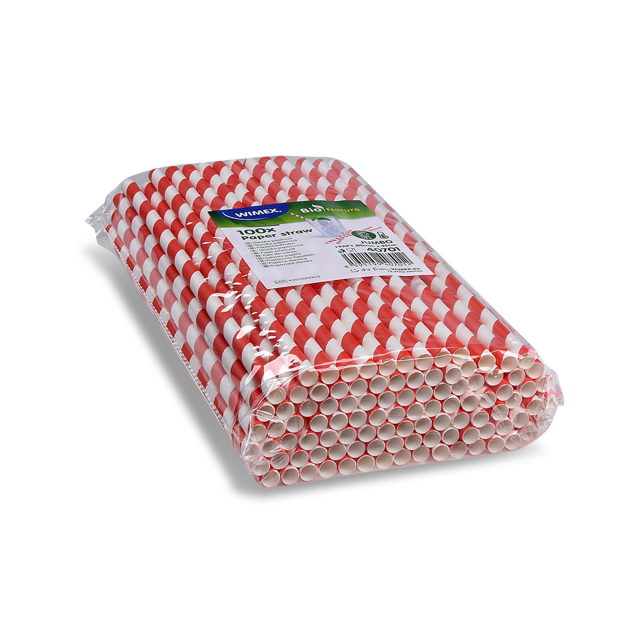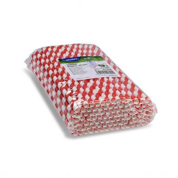 Papierstrohhalme JUMBO rote Spirale. Die Packung enthält 100 Stück. Die Länge beträgt 25 cm und der Durchmesser 0,8 cm.