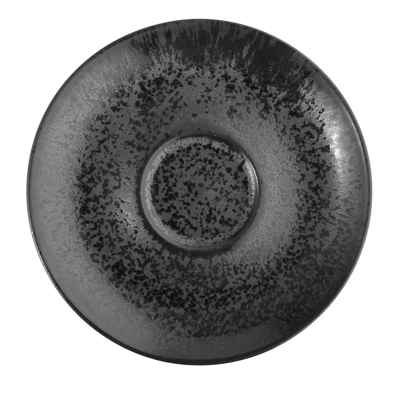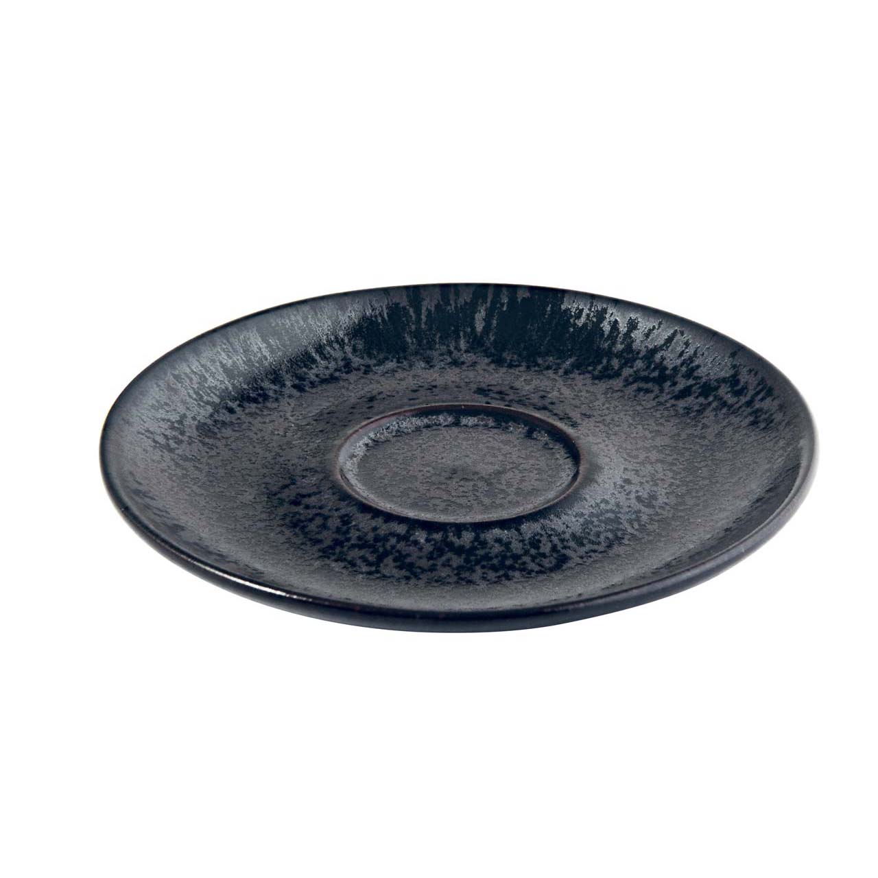 Die 14 cm große Untertasse der Serie Ebony ist aus hochwertigem Porzellan gefertigt und besticht durch ihr modernes, unverwechselbares Design. Die elegante schwarze Farbe in Kombination mit der unregelmäßigen Oberflächenstruktur ergibt ein einzigartiges Design, wodurch jedes Stück ein Unikat ist und besonders stilvoll und luxuriös wirkt. Die Untertasse ist sowohl in der Gastronomie als auch beim modernen Essverhalten zu Hause ein Blickfang. Porzellan garantiert hohe Langlebigkeit im täglichen Gebrauch und ist spülmaschinenfest.