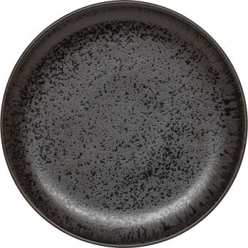 Der 20,2 cm große Dessertteller aus der Serie Ebony ist aus hochwertigem Porzellan gefertigt und besticht durch sein modernes, unverwechselbares Design. Die elegante schwarze Farbe in Kombination mit der unregelmäßigen Oberflächenstruktur ergibt ein einzigartiges Design, das jedes Stück zu einem Unikat macht und ihm eine stilvolle und luxuriöse Note verleiht. Der Teller eignet sich ideal zum Servieren kleinerer Gerichte, Vorspeisen oder Desserts und ist sowohl in der Gastronomie als auch im modernen privaten Essbereich ein Blickfang. Porzellan garantiert hohe Langlebigkeit im täglichen Gebrauch, und der Teller ist spülmaschinenfest.