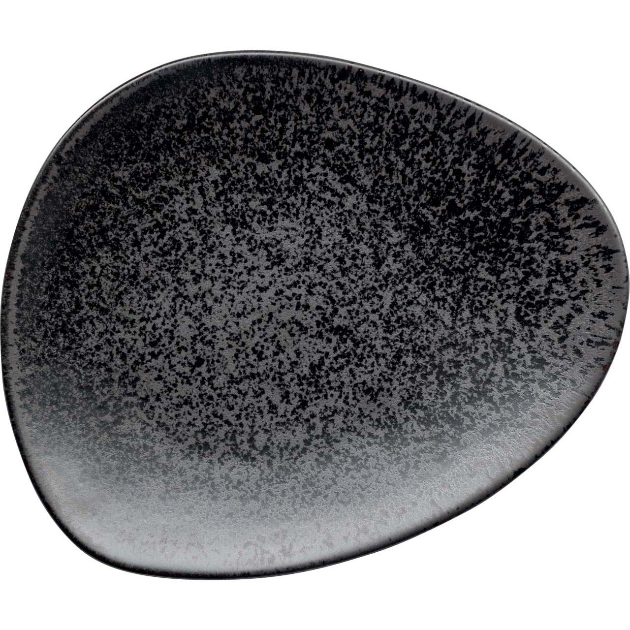Der flache Teller (25 x 20,6 cm) der Serie Ebony ist aus hochwertigem Porzellan gefertigt und besticht durch sein modernes, unverwechselbares Design. Die elegante schwarze Farbe in Kombination mit der unregelmäßigen Oberflächenstruktur ergibt ein einzigartiges Design, das jedes Stück zu einem Unikat macht und ihm eine stilvolle und luxuriöse Note verleiht. Der Teller eignet sich ideal zum Servieren von Hauptgerichten und ist sowohl in der Gastronomie als auch im modernen Esszimmer ein Blickfang. Porzellan garantiert hohe Langlebigkeit im täglichen Gebrauch, und der Teller ist spülmaschinenfest.