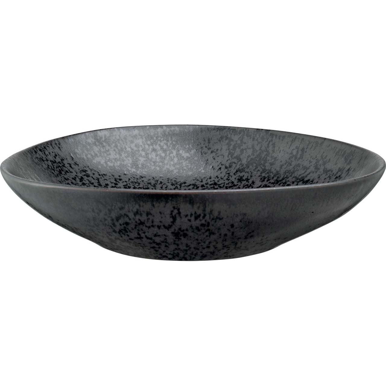Der 24,5 x 23 cm große, tiefe Teller aus der Serie Ebony ist aus hochwertigem Porzellan gefertigt und besticht durch sein modernes, unverwechselbares Design. Die elegante schwarze Farbe in Kombination mit der unregelmäßigen Oberflächenstruktur ergibt ein einzigartiges Design, das jedes Stück zu einem Unikat macht und ihm eine stilvolle und luxuriöse Note verleiht. Der Teller eignet sich ideal zum Servieren von Suppen, Pasta, Salaten und anderen Gerichten mit Sauce und ist sowohl in der Gastronomie als auch im modernen Esszimmer ein Blickfang. Porzellan garantiert hohe Langlebigkeit im täglichen Gebrauch, und der Teller ist spülmaschinenfest.