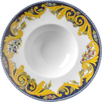 Der 27,5 cm große Pastateller der Serie Sicilia ist aus hochwertigem, glasiertem Porzellan gefertigt und besticht durch sein klassisches und zeitloses Design. Die schlichte Formgebung in Kombination mit der klaren Oberfläche wirkt elegant und lässt sich vielseitig mit anderem Geschirr kombinieren. Dadurch eignet er sich sowohl für die professionelle Gastronomie als auch für den täglichen Gebrauch. Der Teller ist spülmaschinen- und mikrowellengeeignet und somit eine praktische Wahl für den täglichen Gebrauch.
