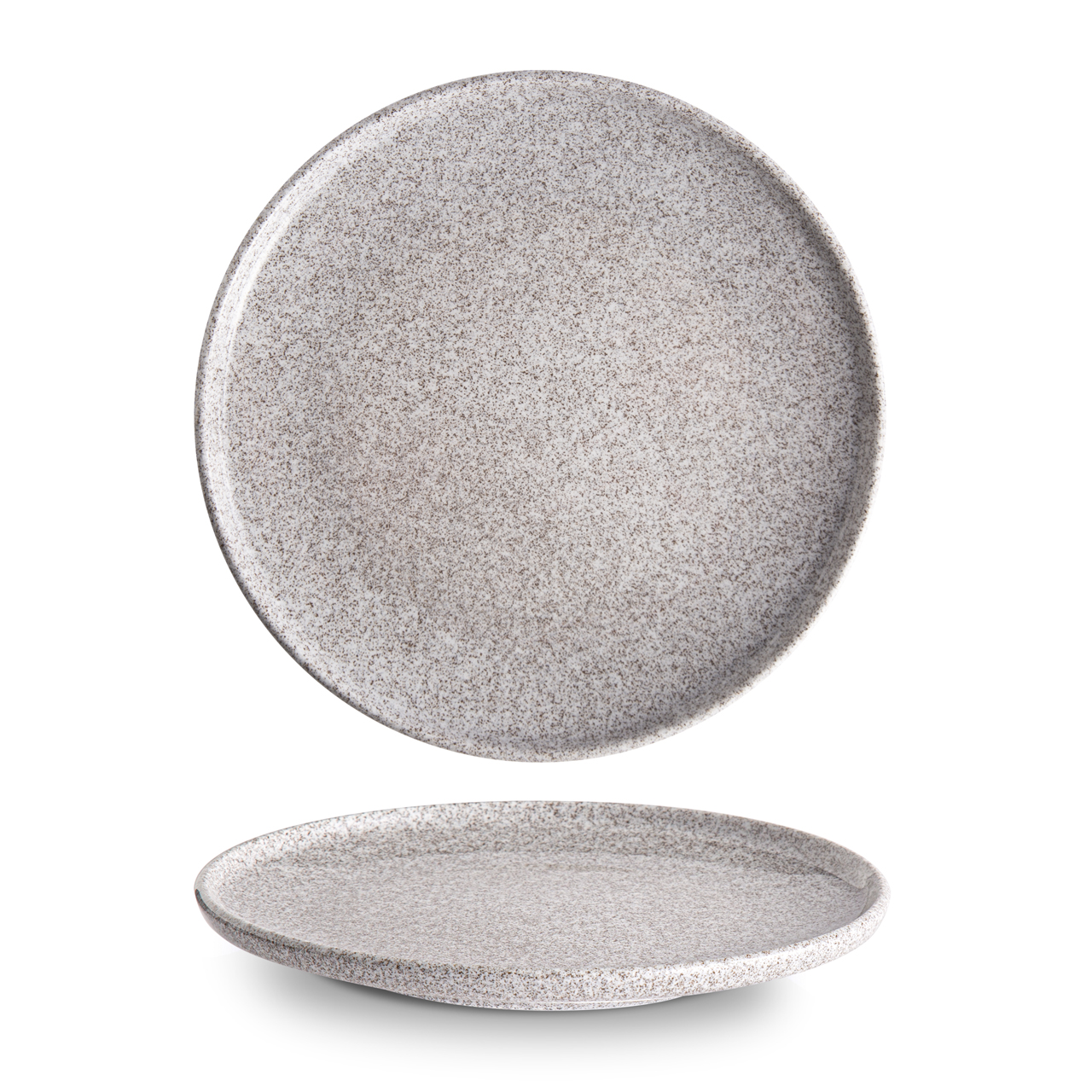 Flacher Granitteller mit 26 cm Durchmesser, glänzend glasiert.