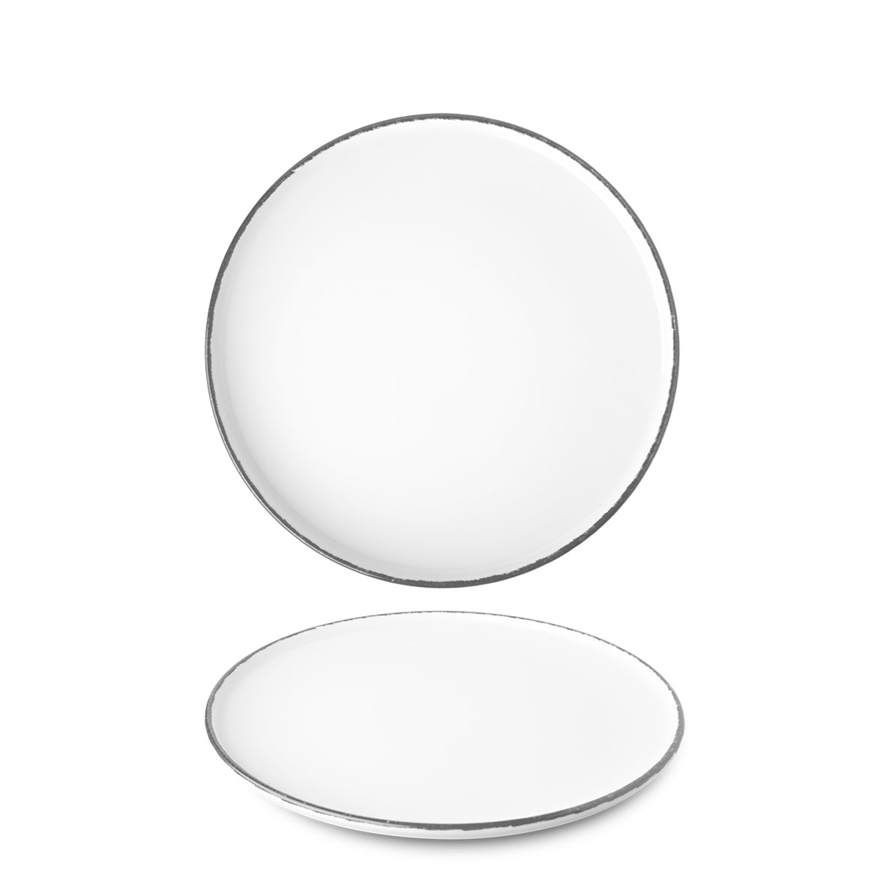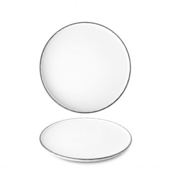 Teller mit 26 cm Durchmesser und grauem Rand. Handbemaltes Porzellan.
