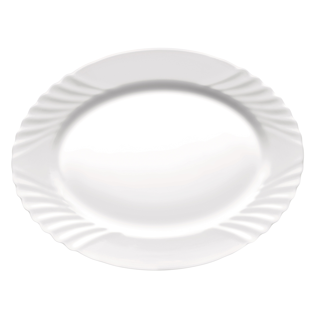 Flache ovale Servierschale mit einem Durchmesser von 36 cm aus Opalglas.