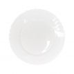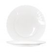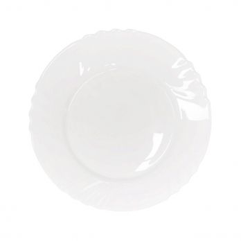 Ein flacher Dessertteller mit einem Durchmesser von 20 cm aus Opalglas, der für Schulkantinen und Gastronomiebetriebe geeignet ist.