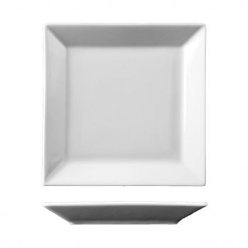 Quadratischer, flacher Teller in modernem Design mit einem Durchmesser von 13 cm.