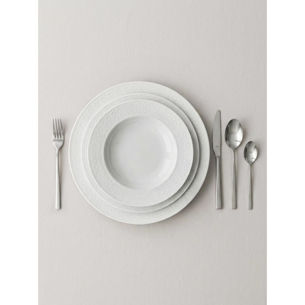 Flacher Teller mit 26 cm Durchmesser. Eleganter Teller aus der Kollektion STARS mit unglasiertem Rand und einer Oberfläche in Natursteinoptik. Mikrowellen- und spülmaschinengeeignet.