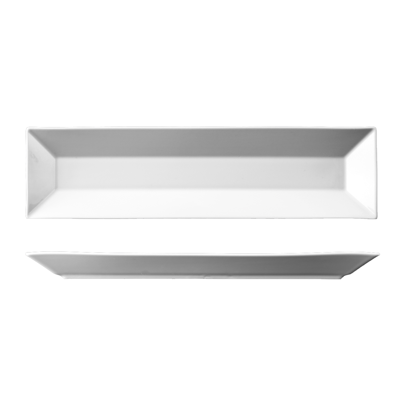 Rechteckiges Tablett mit den Maßen 45 x 12 cm. Auch für Bankette und Catering geeignet.