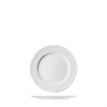 Dessertteller mit 16 cm Durchmesser. Das sanft geschwungene ARCADIA-Porzellan passt ideal zu historisch eingerichteten Interieurs und Restaurants im Retro-Stil.