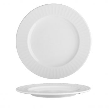 Flacher Teller mit 31 cm Durchmesser. Klare, elegante Linien verleihen Tellern und Schüsseln ein modernes Aussehen.